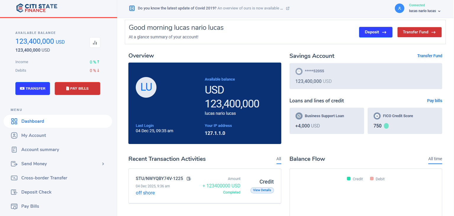 Get the full built of online banking where yo can control any user that create account on your banking system. A fully built online banking, where user can create account, make transfer, deposit an withdrawal.
